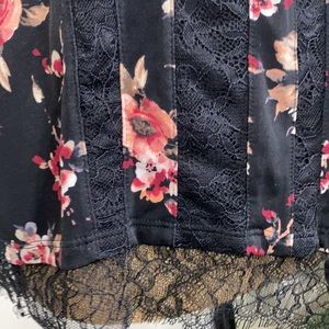 Adorable long sleeved, multi floral blouse with lace trim, a small area of lace on the hemline is snagged (PLEASE SEE PIC), otherwise in perfect condition