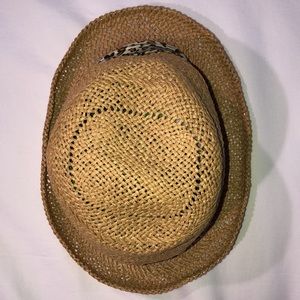 Woven straw hat with leopard print band