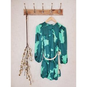 ▪️Women's Long Sleeve Green Rope Belt Tiered Dress -Above Knee