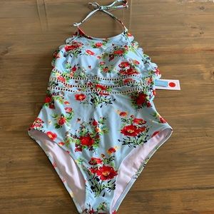 CUPSHE one piece blue floral swimsuit. Brand new with tags! Size medium.