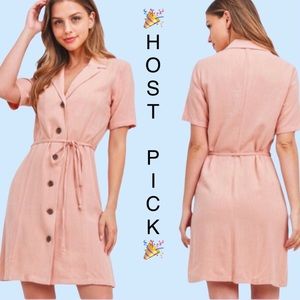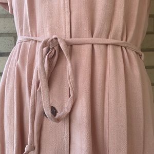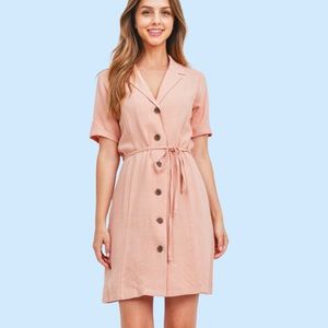 โDONATEDโPeach Blush Button Up V-neck Tie Waist Dress