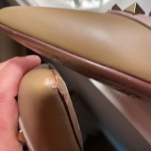 Excellent condition worn twice ! Deep tan and taupe with gold studs minor scuff and crease not noticeable Comes with dust Bag No box