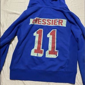 Men’s Mitchell and Ness New York Rangers hoodie. Size small. Shows some minor wear