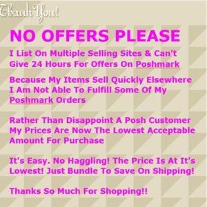 @suaanprice1985 Totally get it! That's why I stopped with the hourly low ball offers, priced everything to sell and put that sign in every listing. Check it out. I don't respond to offers anymore. I'm not allowed to say where on PM though. Also, I've been selling there for 16 yrs so I've built up the relationship. Check my Home page closely 😉
