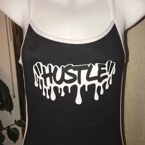 This stylish black romper features white dripping letters that spell out "hustle"! It is made of lightweight and breathable material, making it perfect for wearing in the summer months. The romper has a slim fit and a round crew-neckline, making it flattering and comfortable. The fun and edgy design is sure to make a statement wherever you go. It is available in sizes S-XL. Get ready to hustle in style!