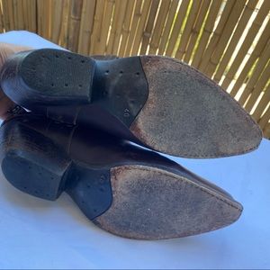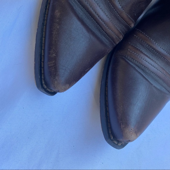 Authentic vintage Fornarina dark brown leather cowboy cowgirl boots featuring turquoise stars and buckles on the sides! Super cute pair of western pull on boots. Similar tags ariat dan post tecovas Laredo