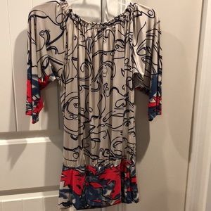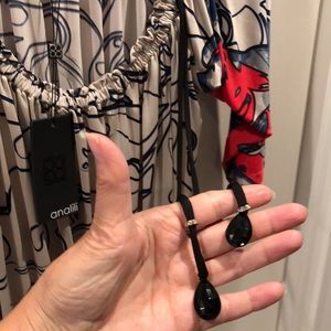 This Beautiful High - end top by: analili has adjustable scoop neckline with decorative pulls / drop waist tan/ red/ Blu