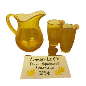 Adorable Lemonade Stand Sign & Pitcher, 2 Glasses & Lemons