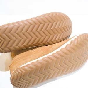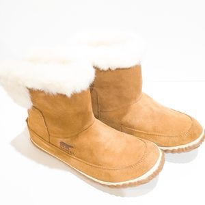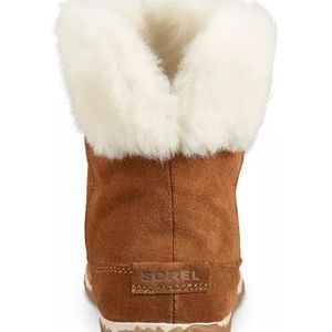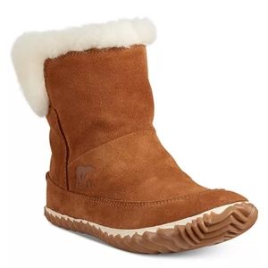 Sorel's Out N About bootie slippers feature plush faux fur in a cuffable design with outdoor-ready waterproof versatility.