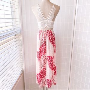 Red Floral Button Front Midi Skirt