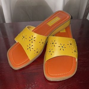 Sandals by Nevada, Yellow/Orange Low Heel, Sz 9