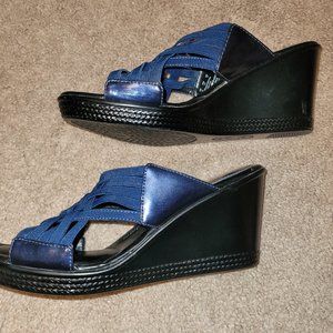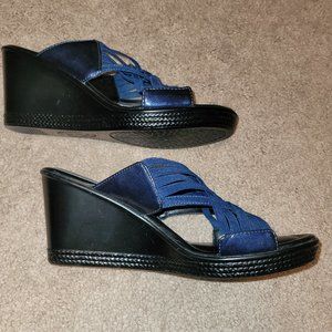 FINAL PRICE Hush Puppies Navy Elastic Strappy Wedge Sandals 9