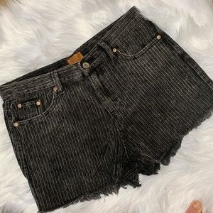 POL Black Distressed Frayed Hem Corduroy Shorts