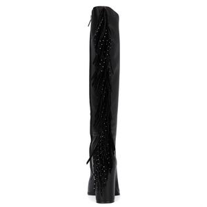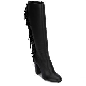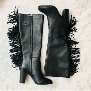 New without box KENNETH COLE Justin Fringe Leather Boot Studs. Size 6.5. Black. Fringe detail at back with silver studs.