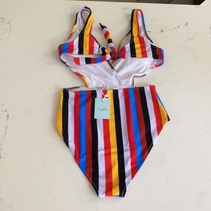 Cupshe Striped One Piece V-Neck Swimsuit size S