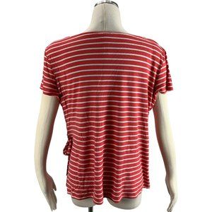 Ma Cherie Maternity short sleeve striped shirt with side tie. Rayon/spandex blend.