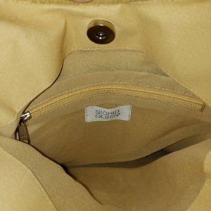 Perfect Summer handbag from Sigrid Olsen. Bag is handcrafted with a gorgeous woven design. Bag is lined, has a zip pocket inside, wooden handles, and a magnetic snap closure. I guess the coloring is off on the photos. It is actually more of a beige/tan coloring.