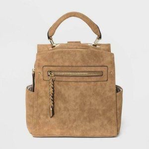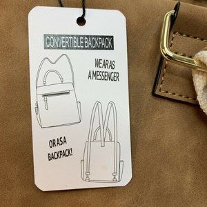 Women's Zip Closure Convertible Backpack Cognac NY