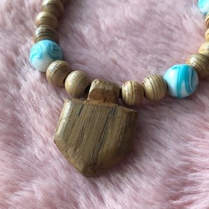 Handmade wooden beads bracelet with leather thread