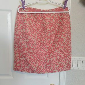 From 2004... I gotta be honest, I'm not sure why I'm selling this. I love it. J. Crew, size 10 pencil skirt. Coral and tan, ribbon binding at waist, Kick vent at left knee. Linen/Cotton (70/30). Looks brand new.