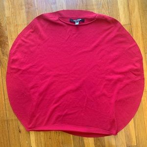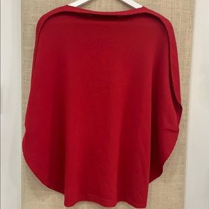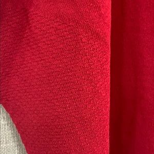 Stunning red weave with hidden side arm holes and collar lapse-seam that can fold over front or back.