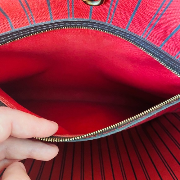 LV Damier Ebene Neverfull MM in good condition . Corners has slight signs of wears . Handles are in good condition . No cracks . Leather trim has slight wears . Interior and exterior have slight stains . No clutch . Please check and zoom the photos for more details .