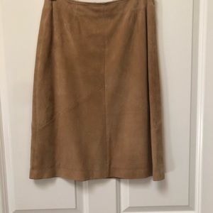 VAKKO Sport 💯 Suede Butter designer construction. Fully lined. 3 season weight, so soft in a light tan neutral. skirt waist 14”zipper 6”drop 23 1/2”