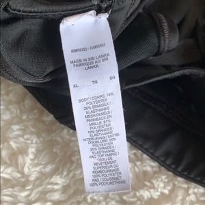 Super comfy sports bra, worn couple times. Just notice tiny thread coming through the N. Other then that almost perfect condition. No rip or tears. Has padding