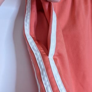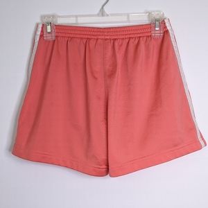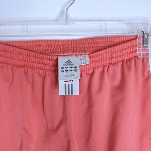 These Adidas shorts are a really nice coral color. They're made with a somewhat thick material which looks and feels great in my opinion. They feel so soft on the inside and an added bonus is that they have pockets (see photos). These are in excellent used condition. The only reason I'm getting rid of them is because I'm downsizing my belongings. Fit is true to size!