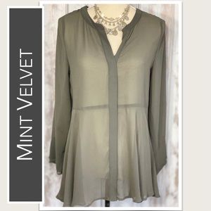 Mint Velvet Sheer Blouse Charcoal Long Sleeve Size 10 GUC
