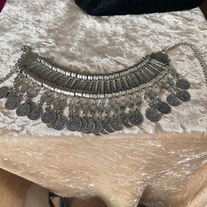 Absolute stunner! Choker in silver tone, measures approx 8" across plus chain with extender. A beautiful heavy weight (6.1 oz) statement piece.