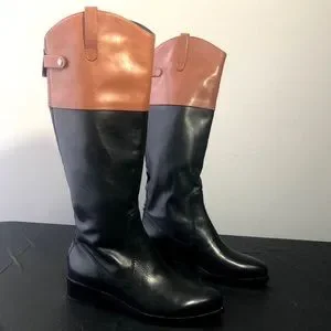Halston Heritage Barbara Black Brown Riding Boot 6
