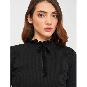Stunning Missoni iconic knit mini dress that gives off fun retro 70's vibes. This dress features voluminous bishop balloon sleeves, a crew scoop neckline, and a geometric chevron black and white knit with a hint of metallic copper threading throughout