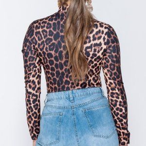 Leopard Print Long Sleeve High Neck Bodysuit Top