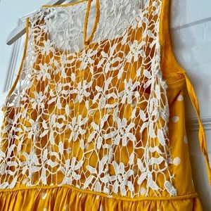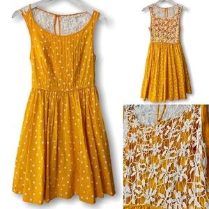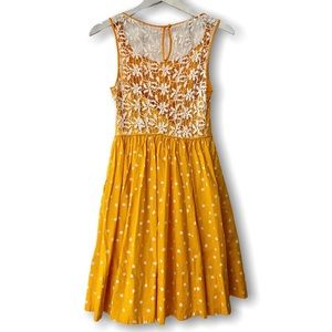 Anthropologie’s Melora Lace Back Yellow Polka Dot Dress