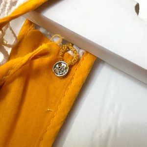 The price accounts for tears/spots. The dress is still its vibrant yellow color!