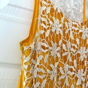 This beloved Anthro dress is in need of someone w/light sewing skills to bring her back! The lace is torn in places & one spaghetti strap needs a few stitches (or a 🧷🤷♀️) to secure it. Most notably, there is a larger mark on the skirt front. (You can’t see it when it’s hanging - it’s in one of the pleats.) Haven’t attempted removal - selling as is!