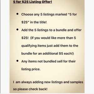 This listing is included in the 5 for $25 offer. Bundle any 5 listings marked 5 for $25 and send an offer for $25!