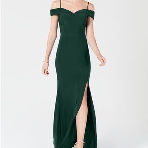 Juniors Cold-Shoulder Gown Pine Color