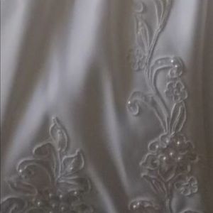 @patricia5tt5 I stated in the description that it has never been worn, it is brand new. No tears, rips, stains etc. It is currently being stored at my moms to protect it from my children & animals lol. This is all the pictures I have right now, but when my mom returns home from vacation this week I can post more. Thanks for ur interest!