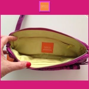 TAGS: Handbags Purses Pocketbook Patterned Nickel Pockets Zip Zipper Zippers Latico Raven Pink Magenta Hotpink Leather Clutch Crossbody Handbag Purse Pocketbook Bag  Bags Designer NWT Authentic Accessory Accessories Raven Barbie