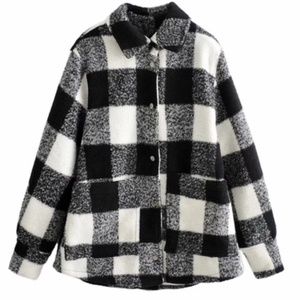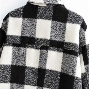 Boyfriend Fit Plaid Jacket Coat Black White