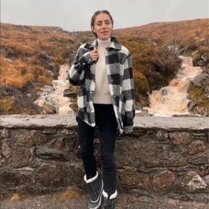 Fully lined - real pockets - snap button cuff & front closure - black white plaid - oversized coat jacket fall winter trucker