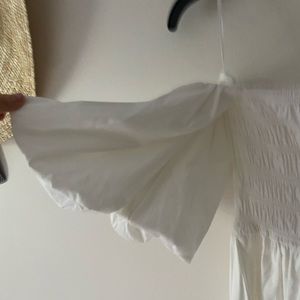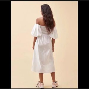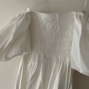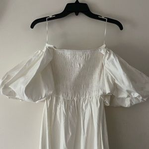 Nwot. In perfect new condition. Comfortable fit Xs. I think it can be worn as S too. Balloon sleeves. Off shoulder. 98% organic cotton. 2% spandex. Unlined. Smoked upper, stretchy. Length 41”. Chest 12.5”. Measured flat on the ground. Stretchy chest.