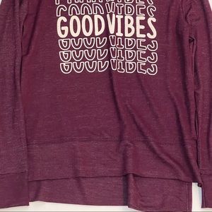 Cute maroon sweater. SUPER soft. Never worn. Says “good vibes”