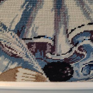 Beautiful Blue Toned Pierrot Crewelwork Art from the 90s