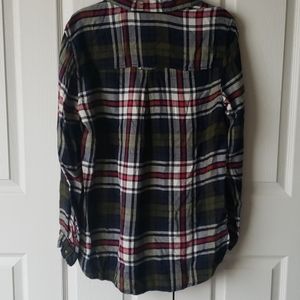 Olive green, red, white and navy button down plaid "ahh-mazingly soft" top from American Eagle. Super soft feel with a hi-low hem. Size L, fits TTS. New with tags, never worn.
