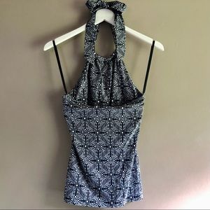 BANANA REPUBLIC Black White Geometric Leaf Halter