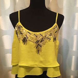 BEBE kiwi green bling ruffle cami top size Small. Beautiful color!!!!