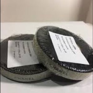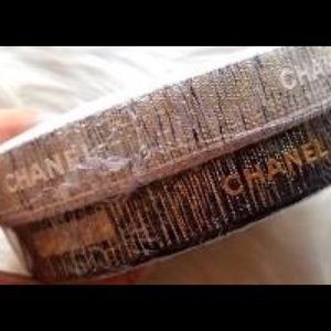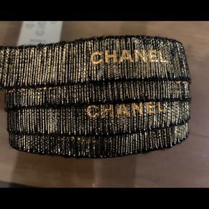 100% authentic Chanel gold on black fuzzy “burlap”